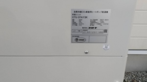 明和町 コロナ自然冷媒CO2家庭用ヒートポンプ給湯機貯湯ユニットCTU-37AY2K