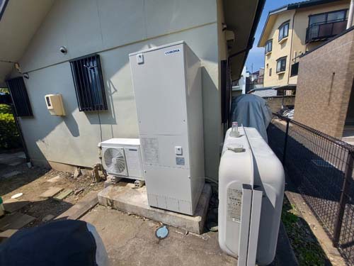 大台町 コロナ自然冷媒CO2家庭用ヒートポンプ給湯機 貯湯ユニットCTU-37AZ1K、ヒートポンプユニットCHP-DZ451K エコキュート交換工事