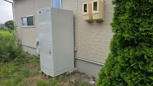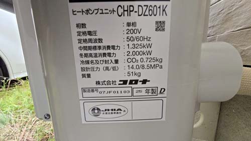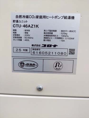伊賀市若葉町 コロナ自然冷媒CO2家庭用ヒートポンプ給湯機 ヒートポンプユニットCHP-DZ601K、貯湯ユニットCTU-46AZ1K エコキュート交換工事